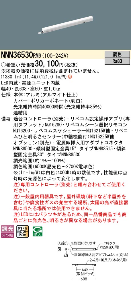 据置取付型 LED(調色) 建築部材照明 連結用 調光タイプ(ライコン別売)/L600タイプ
