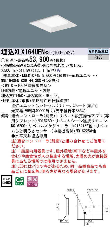 天井埋込型 LED(昼白色) 一体型LEDベースライト スクエア光源タイプ・一般光源ユニット 連続調光型調光タイプ(ライコン別売) LiBecoM(リベコム) スクエアタイプ/下面開放型 コンパクト形蛍光灯FHP32形3灯器具相当 FHP32形3灯・6500 lm(NNLK10745+NNL1640ENRS9)