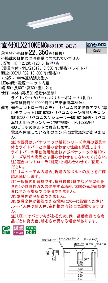 【代金引換不可】天井直付型 20形 一体型LEDベースライト 連続調光型調光タイプ(ライコン別売) LiBecoM(リベコム) 反射笠付型 Hf蛍光灯16形高出力型1灯器具相当 Hf16形高出力型・1600 lm(NNLK21517J+NNL2100ENJRS9)