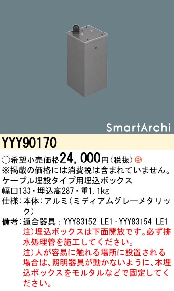 ケーブル埋設タイプ用埋込ボックス YYY83152 LE1用・YYY83154 LE1 SmartArchi(スマートアーキ)